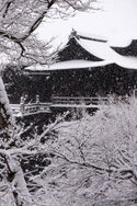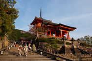 Perhaps the most famous of all temples in Kyoto, Kiyomizu-dera draws lots of visitors all year round. Located along the hillside in the eastern mountains, a 15–20 minute walk from the River Kamo at Gojō street, the main attraction of Kiyomizu-dera is its main hall, constructed upon a massive wooden terrace in which not a single nail has been used. With its name literally meaning “temple of the pure water,” Kiyomizu-dera boasts a water source where pilgrims can purify their body and mind. The usual route to Kiyomizu involves approaching the temple from its main gate, passing by streets lined with shops.