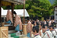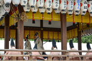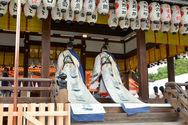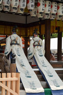 At the eastern end of Shijō Street, contemporary Kyōto’s bustling center, and just at the heart of the preserved Gion entertainment district lies Yasaka Shrine. The shrine is visited by a large number of visitors, as it is located along the popular strolling path from Kiyomizu-dera in the south to Nanzen-ji in the north. The shrine hosts the annual Gion Festival in July, one of Kyōto’s and Japan’s three great festivals.