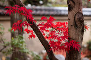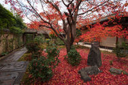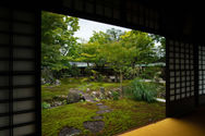 A large sub-temple of Daitoku-ji, Ōbai-in is perhaps not as well-known as nearby Kōtō-in. Established in 1562 on the incentive of the famous warlord Oda Nobunaga to construct a family temple honoring his father, the precincts contain several buildings along a central moss garden. After passing through a spacious front garden, one follows a path outside alongside several tea houses, before reaching a separate entrance building to take off shoes and continue. Inside, you then circle around the central garden to reach the main hall and its surrounding quarters. These buildings are surrounded by several gardens. As with most Zen temples, a south-facing karesansui-style is located on the front side of the main hall, whereas the other gardens combine moss and karesansui elements. The inner courtyard garden is interesting during late autumn, when the maple tree behind it turns red, providing a stark contrast to the otherwise simplistic Zen color palette.