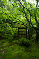 The highlight of this temple — at least in my opinion — is the Wabi Garden 侘の庭 (the “garden of simplicity”), which is best enjoyed from the small tearoom. On rainy days, you get the feeling to be somewhere in a deep forest, so lush and green is the scenery in front of you. Unfortunately — once again in my opinion — the temple has recently (2020) added a small lamp in the tearoom, which is quite popular with Japanese Instagrammers, but has taken away some of the magic previously found in the temple.