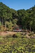 Reflections at a small pond at Ōharano Shrine.